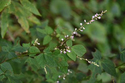 2021年(令和3年)9月18日(土)、西之表市岳之田武部線の道沿いで取材した枝の葉腋に細長い花序を出し淡紅色の花をまばらに咲かせたマメ科ヌスビトハギ属の多年草ヌスビトハギの開花風景を紹介しています。